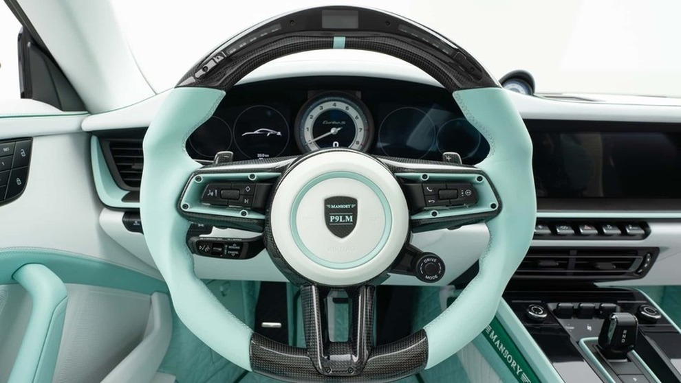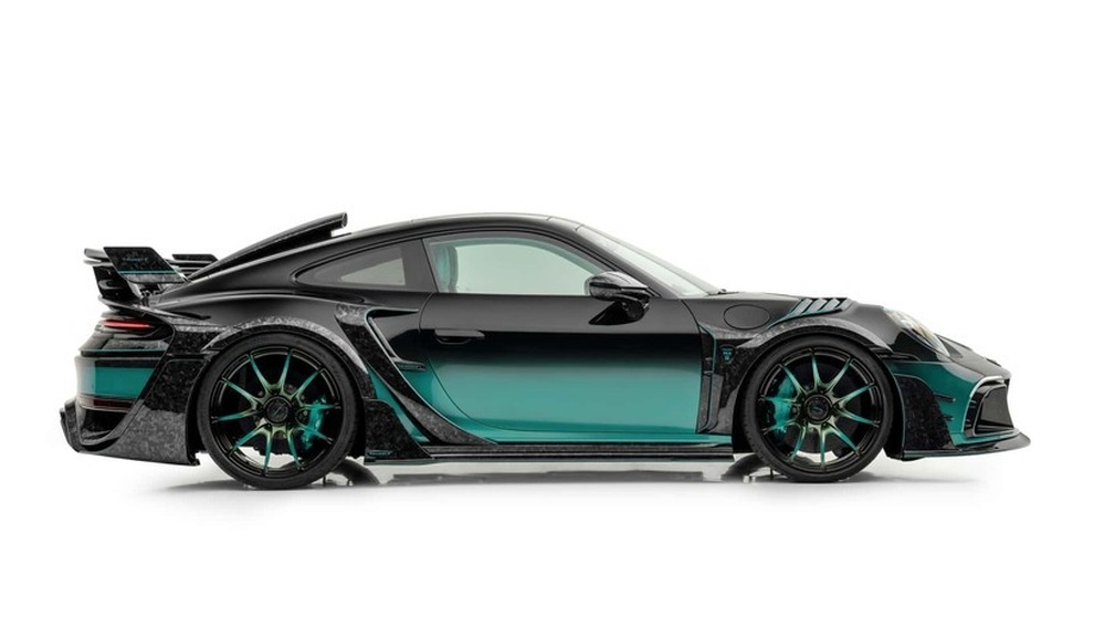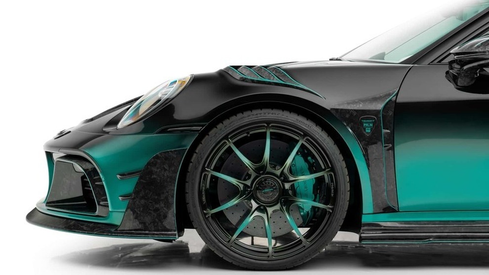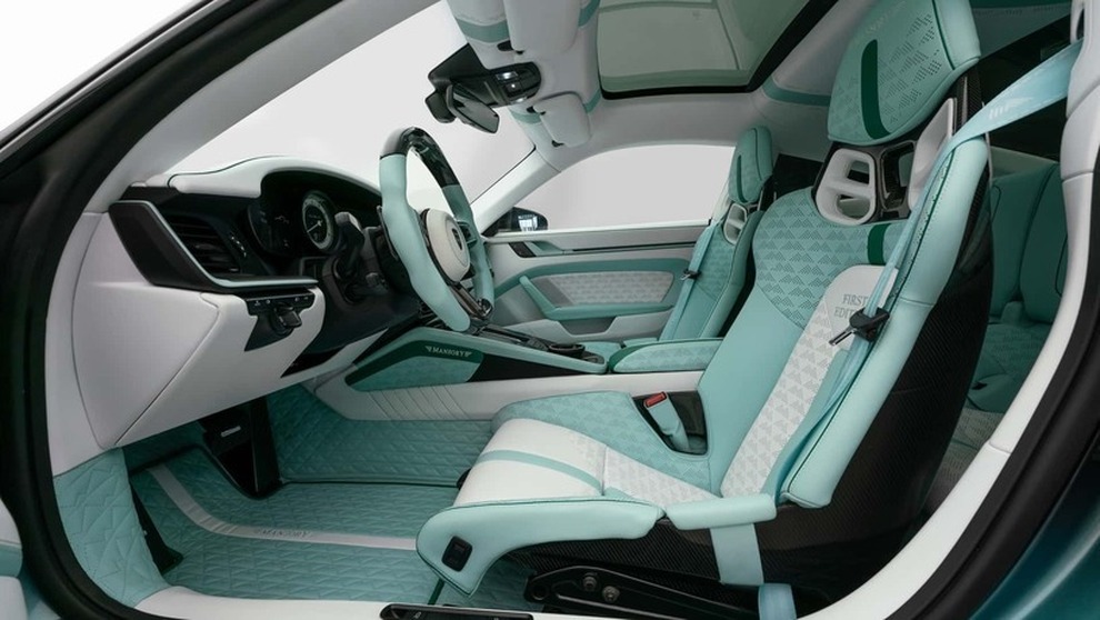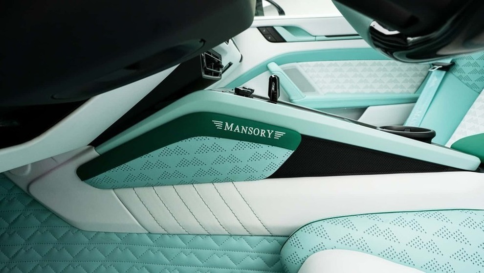 همانطور که در تصاویر مشاهده میکنید، پورشه جدید منصوری ترکیب رنگ بسیار خاصی را بر تن دارد. ترکیب جالبی از مشکی بافت دار و سبز که حتی رینگها نیز با این ترکیب هماهنگ شده اند. در فضای داخل کابین نیز حالتی مشابه در نظر گرفته شده با این تفاوت که سبز گرم جای خود را به یک رنگ نعنا یخی خاص داده تا بین گرمی بیرون و سردی داخل تعادلی لوکس و دوست داشتنی ایجاد شود.