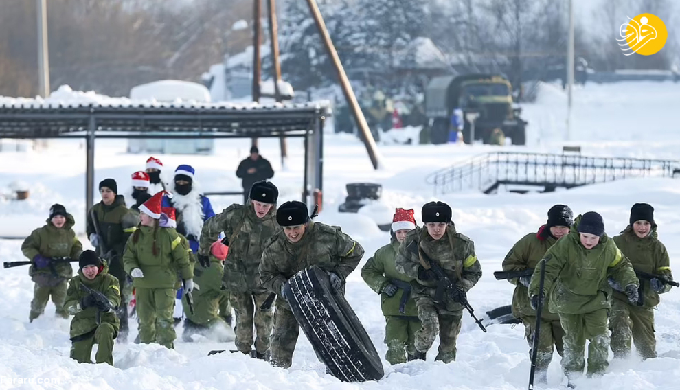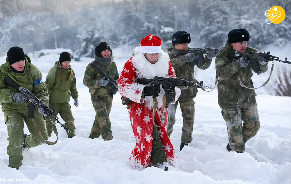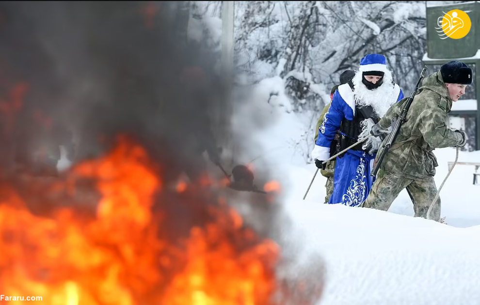 نیروهای گارد ملی روسیه در جریان یک تمرین نظامی لباس بابانوئل به تن کرده و با تفنگهای خود شلیک کردند. بابانوئل در روسیه به پدر موروز معروف است، شخصیتی شبیه بابانوئل که معمولا لباسهای قرمز و گاهی آبی میپوشد. این رزمایش در سیبری برگزار شد.