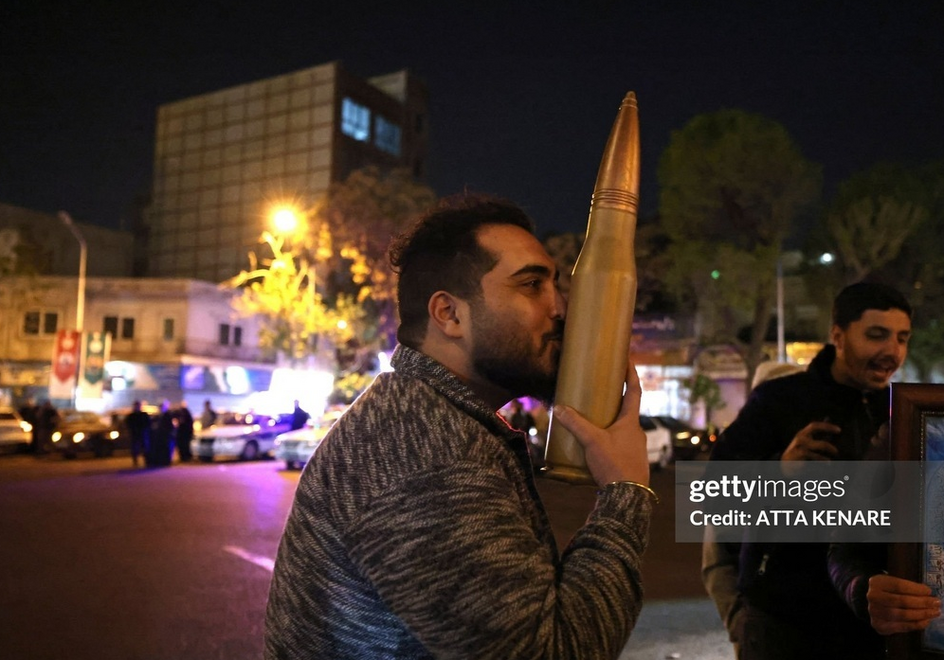این عکس در حاشیه اجتماع مردم تهران در حمایت از حملات پهپادی سپاه پاسداران به اسرائیل گرفته شده است.