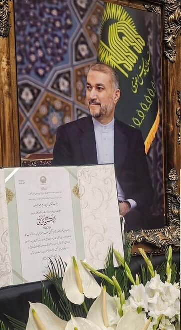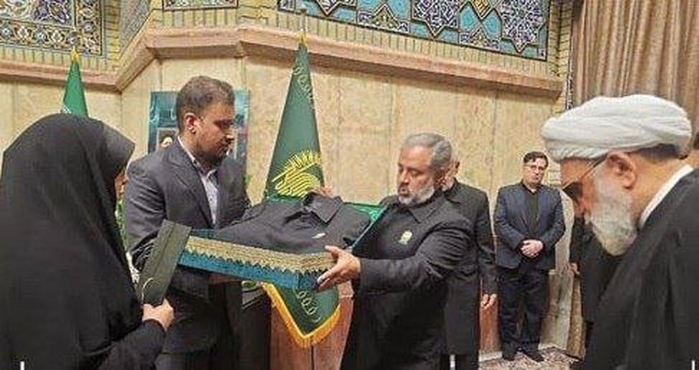 اعطای نشان و لباس خادمی امیرعبداللهیان به همسر شهید