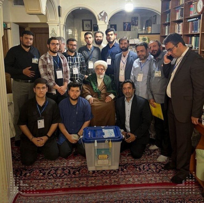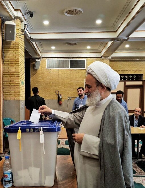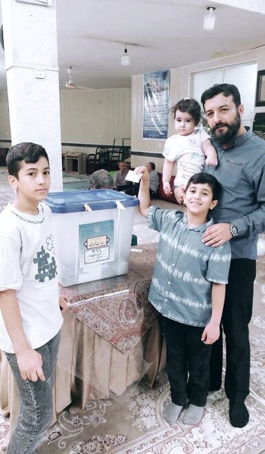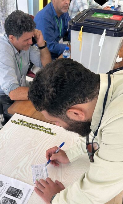 تصاویری از مداحان معروف در هنگان انداختن رأی در صندوق را مشاهده میکنید.