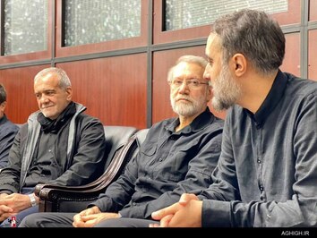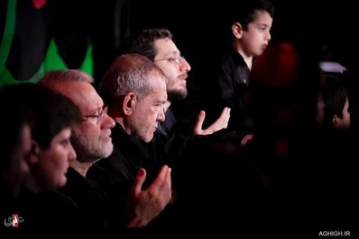 مخاطب ۲۴- مسعود پزشکیان رئیس جمهوری منتخب و علی لاریجانی مشاور مقام معظم رهبری در شب تاسوعای حسینی در مراسم هیئت ریحانة النبی در آستان مقدس امام زاده صالح حضور پیدا کردند.