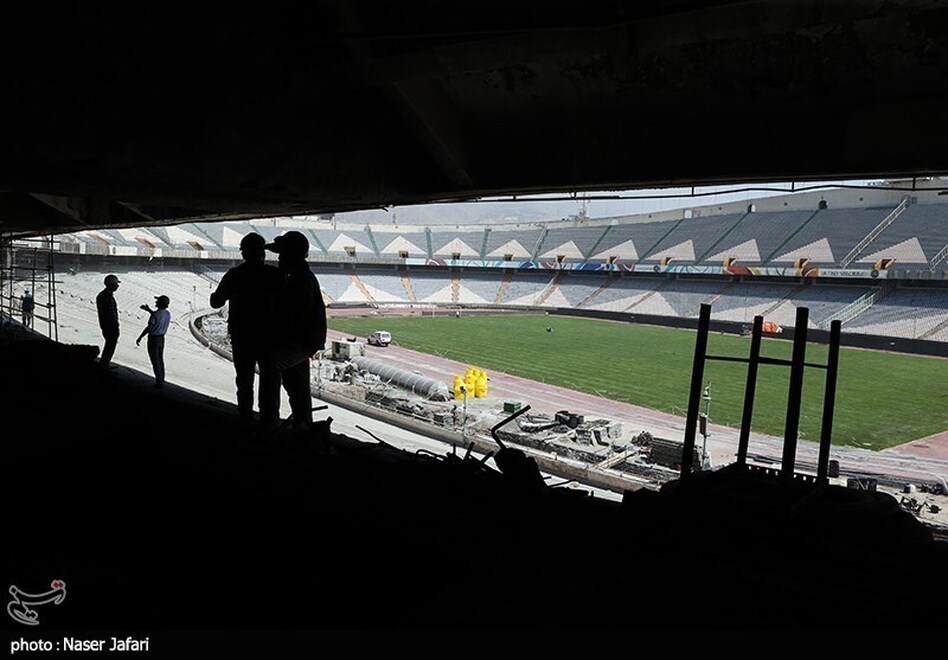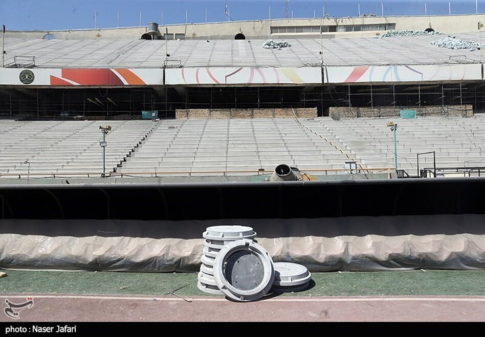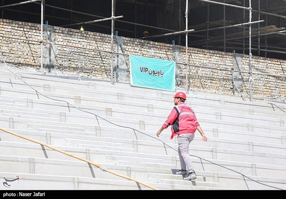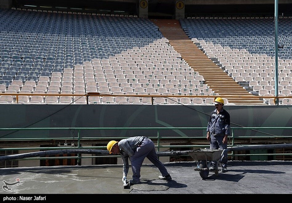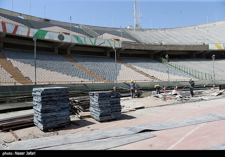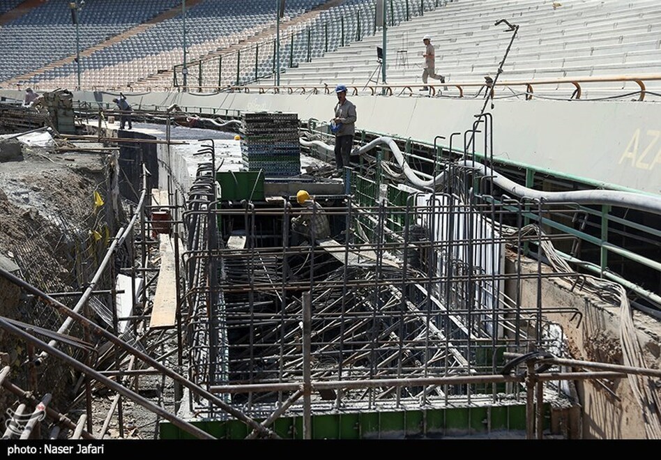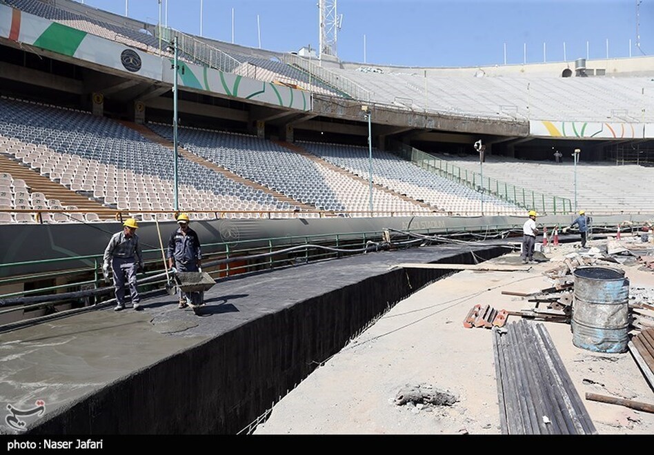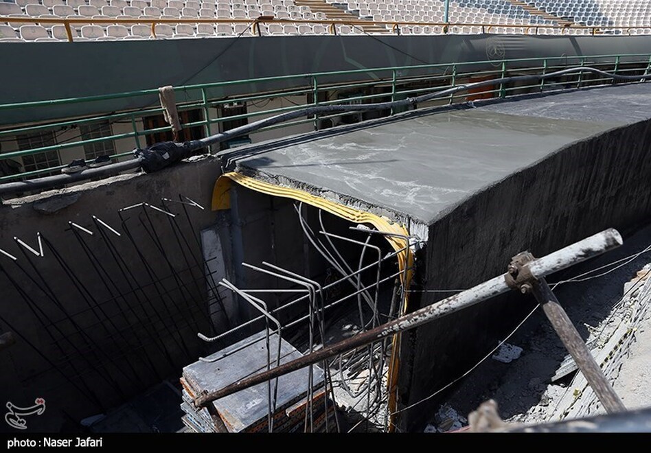 در ابتدا، اولین چیزی که به چشم می‌خورد تخریب جایگاه‌های CIP ،VIP، خبرنگاران و همین‌طور مقاوم‌سازی برخی از سکوها بود. کارگران در هوای بالای 40 درجه سخت مشغول کار بودند. تونلی برای خبرنگاران در حال احداث است تا آنها به صورت تفکیک از سایرین به جایگاه خود بروند.