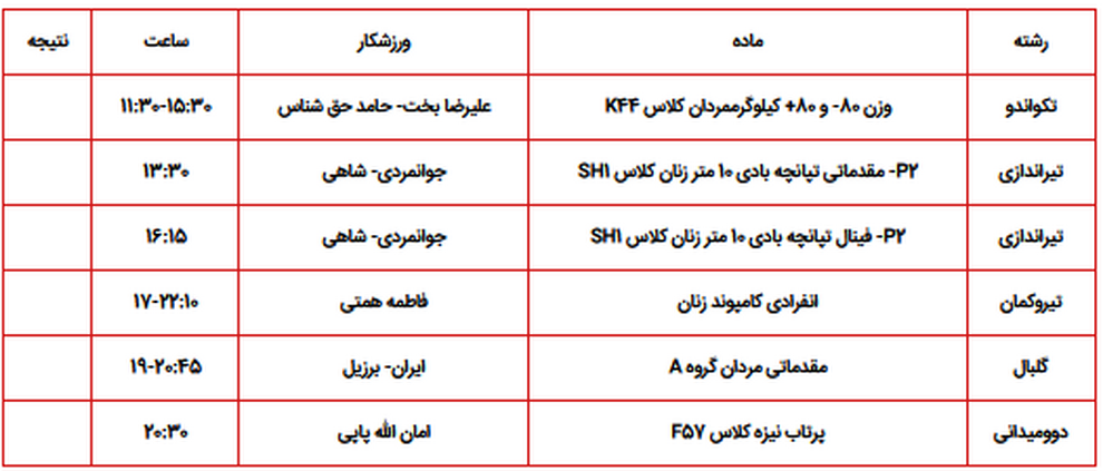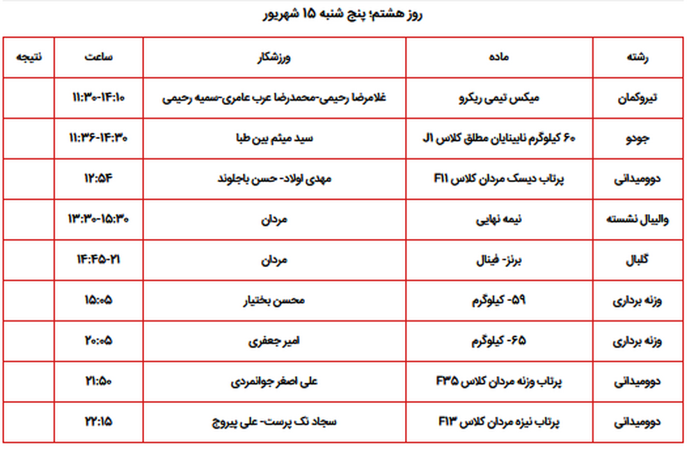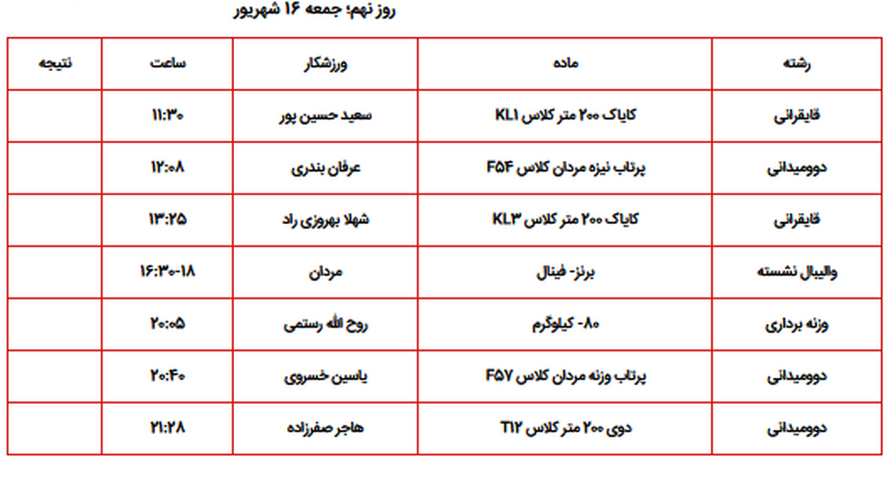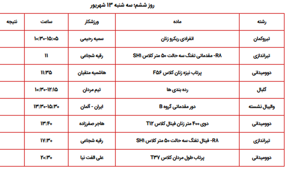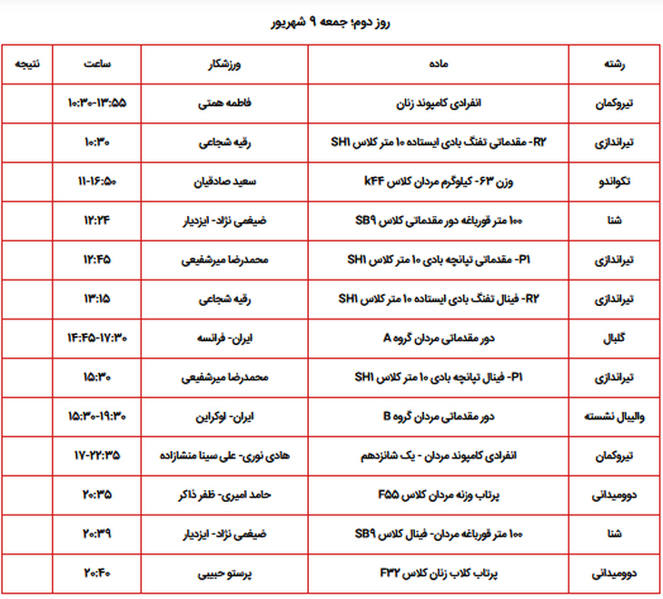 برنامه و نتایج کامل کاروان ایران در پارالمپیک ۲۰۲۴ پاریس