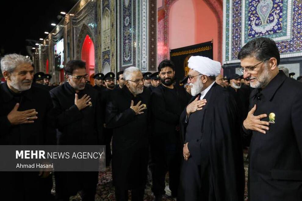 مراسم خطبه خوانی شب شهادت امام رضا (ع) شامگاه سهشنبه ۱۳ شهریور ۱۴۰۳ با حضور مسعود پزشکیان رییس جمهور، محمدباقر قالیباف رئیس مجلس شورای اسلامی، آیت الله سید احمد علم الهدی نماینده ولی فقیه در خراسان رضوی، در صحن پیامبر اعظم (ص) برگزار شد