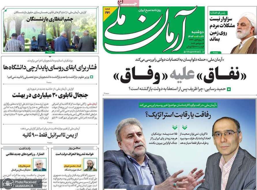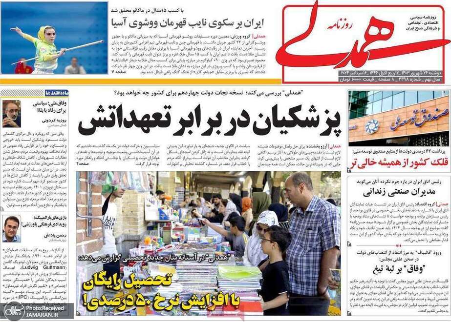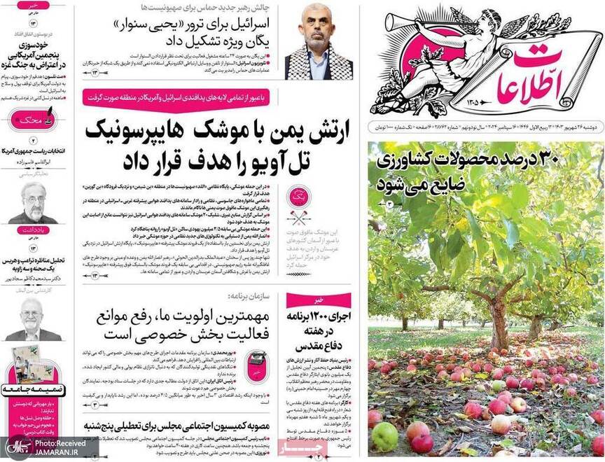 گزیده روزنامه‌های ۲۶ شهریور ۱۴۰۳