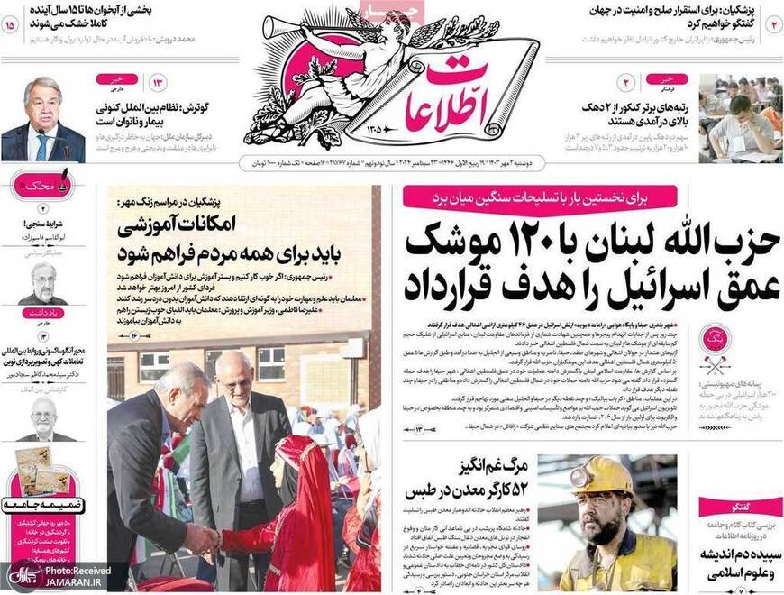 گزیده روزنامه‌های ۲ مهر ۱۴۰۳