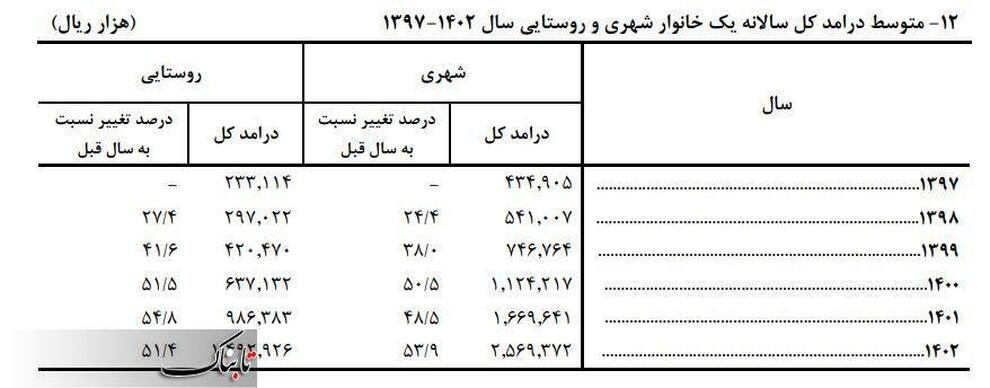 از سوی دیگر، یک خانواده روستایی در سال گذشته به طور میانگین ۱۴۹ میلیون و ۲۹۲ هزار تومان درآمد داشته که نسبت به سال ۱۴۰۱، افزایش ۵۱.۴ درصدی را به ثبت رسانده است. این در شرایطی است که درآمد سالانه ۲۵۶ و ۱۴۹ میلیون تومانی شهرنشیان و روستاییها در سال گذشته نسبت به پایان سال ۱۳۹۹، به ترتیب ۲۴۴ و ۲۵۵ درصد رشد داشته است.