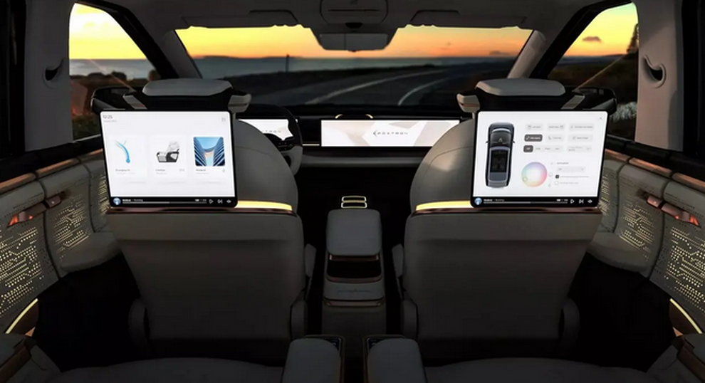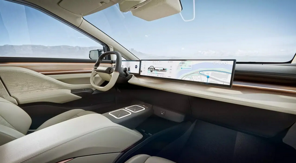 در داخل، صندلیهای هفت نفره در یک طرح ۲+۲+۳ قرار دارند. داشبورد خودرو دارای یک نمایشگر کیلومترشمار دیجیتال در کنار یک صفحه نمایش لمسی بسیار کشیده، در کنار دو نمایشگر در عقب است.