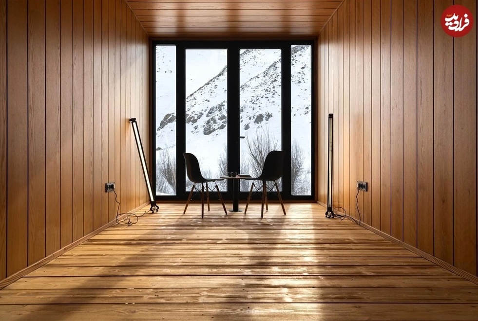 در واقع هدف اصلی معماران در طراحی این کلبه همین بوده است که فضایی برای «تماشا» خلق کنند نه اینکه بنا را طوری بسازند که خودش به مرکز توجه تبدیل شود و اقامتکنندگان را از تمرکز بر زیبایی مناظر طبیعی اطراف محروم کند. به همین دلیل است که نمایی عاری از پیچیدگی برای کلبه در نظر گرفته شده و طراحی داخلی آن هم کاملا ساده است؛ با تاکید بر قاب بزرگ شیشهای که قرار است نگاه ساکنان کلبه را تا دوردستهای برفی پرواز بدهد.