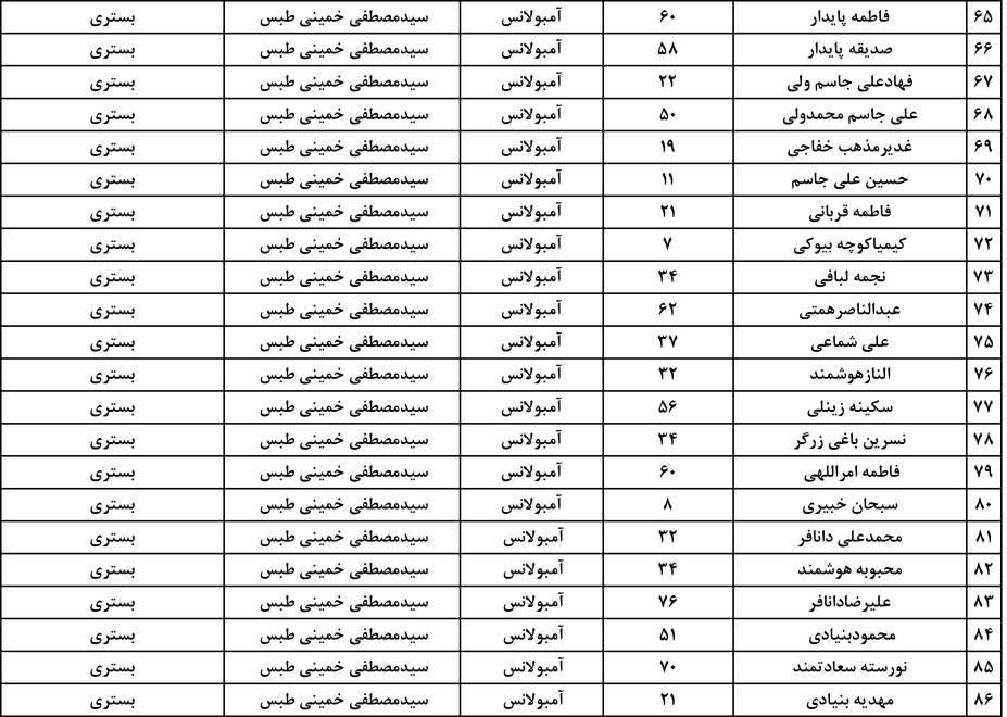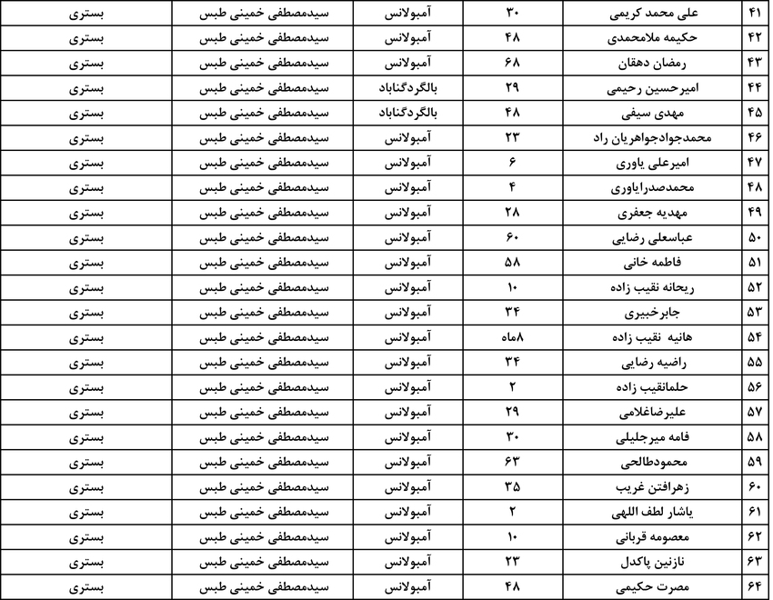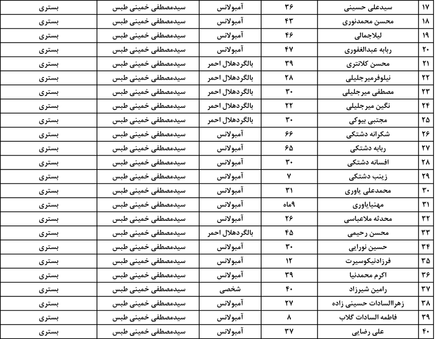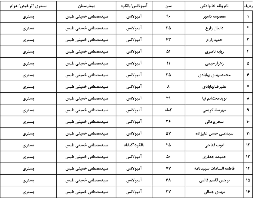 لیست اسامی مصدومان حادثهی قطار مشهد_یزد که تا این لحظه به بیمارستان طبس منتقل شدند
