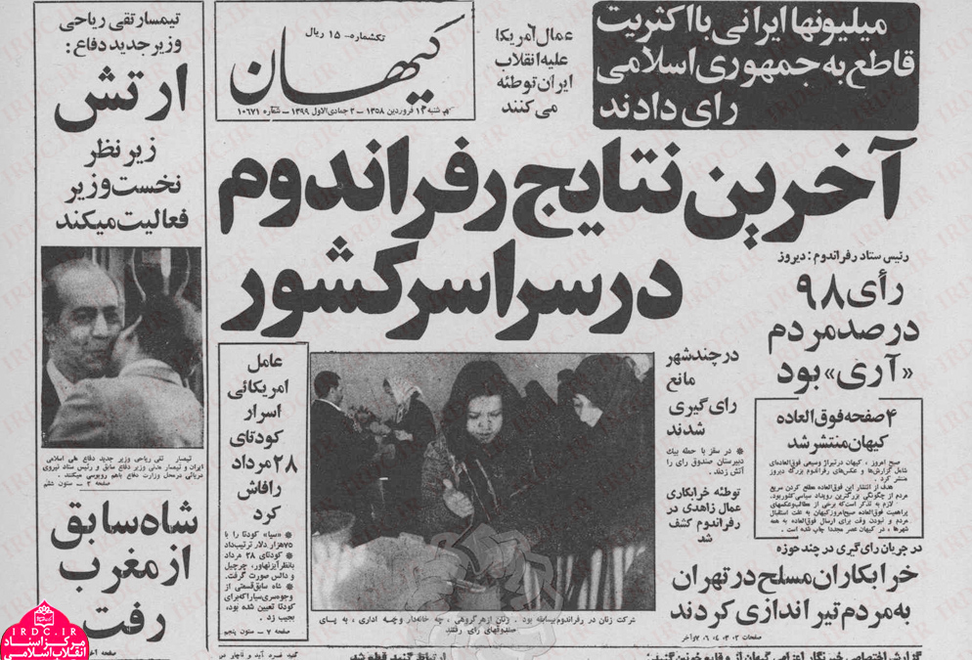 سرانجام انتخابات برگزار و نظر مردم درباره ساختار نظام رسما اعلام شد و بازتاب گستردهای در مطبوعات هم پیدا کرد. از اطلاعات تا کیهان و آیندگان به تحلیل و واکاوی حضور مردم و «آری» آنان به «جمهوری اسلامی ایران» پرداخته بودند.