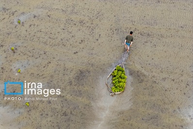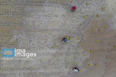 مخاطب۲۴- همه ساله با فرا رسیدن فصل بهار کشاورزان و برنج کاران مازندرانی اقدام به آب بستن و آماده سازی زمین‌های کشاورزی برای کاشت برنج به دو صورت سنتی و مکانیزه می‌کنند. نشاء کاری یکی از مراحل کشت برنج است که در آن جوانه برنج که پیش از این در خزانه آماده شده در زمین کشت می‌شود.