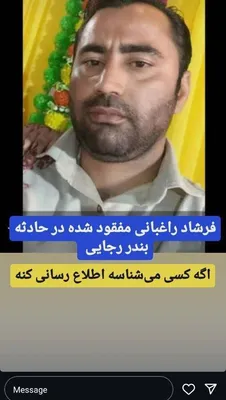 مخاطب۲۴- تصاویری از تعدادی از هموطنان بعد از فاجعه در بندر شهید رجایی مفقودشدهاند که خانواده یا دوستان آنها منتشر میکنند تا نشانی از آنها پیدا کنند.