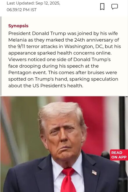 مخاطب۲۴، انتشار تصاویر جدیدی از دونالد ترامپ، رئیسجمهور ایالات متحده، در مراسم بیستوچهارمین سالگرد حملات ۱۱ سپتامبر در واشنگتن دیسی بار دیگر توجه افکار عمومی را به وضعیت سلامت جسمانی او جلب کرده است. در این تصاویر، بهوضوح یک سمت صورت ترامپ دچار افتادگی به نظر میرسد؛ نکتهای که بسیاری از رسانهها و کاربران فضای مجازی آن را نشانه احتمالی سکته مغزی جزئی دانستهاند.