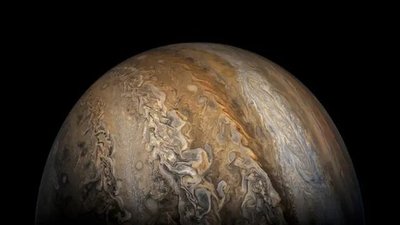 "مشتری" بسیار، بسیار دورتر و بسیار، بسیار بزرگتر از چیزی است که تصور میکنید. این تصویر از مشتری توسط فضاپیمای جونو در سپتامبر ۲۰۱۷ ثبت شده است